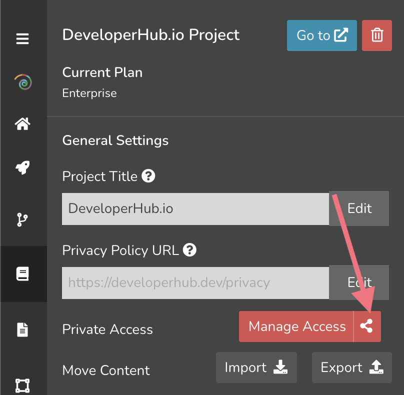 in the sidebar. - Click on Manage Access.