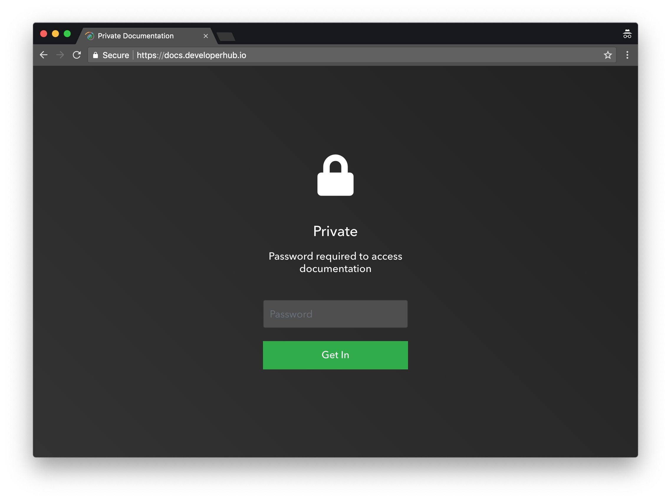 - Visiting the documentation site, and entering a shared password.